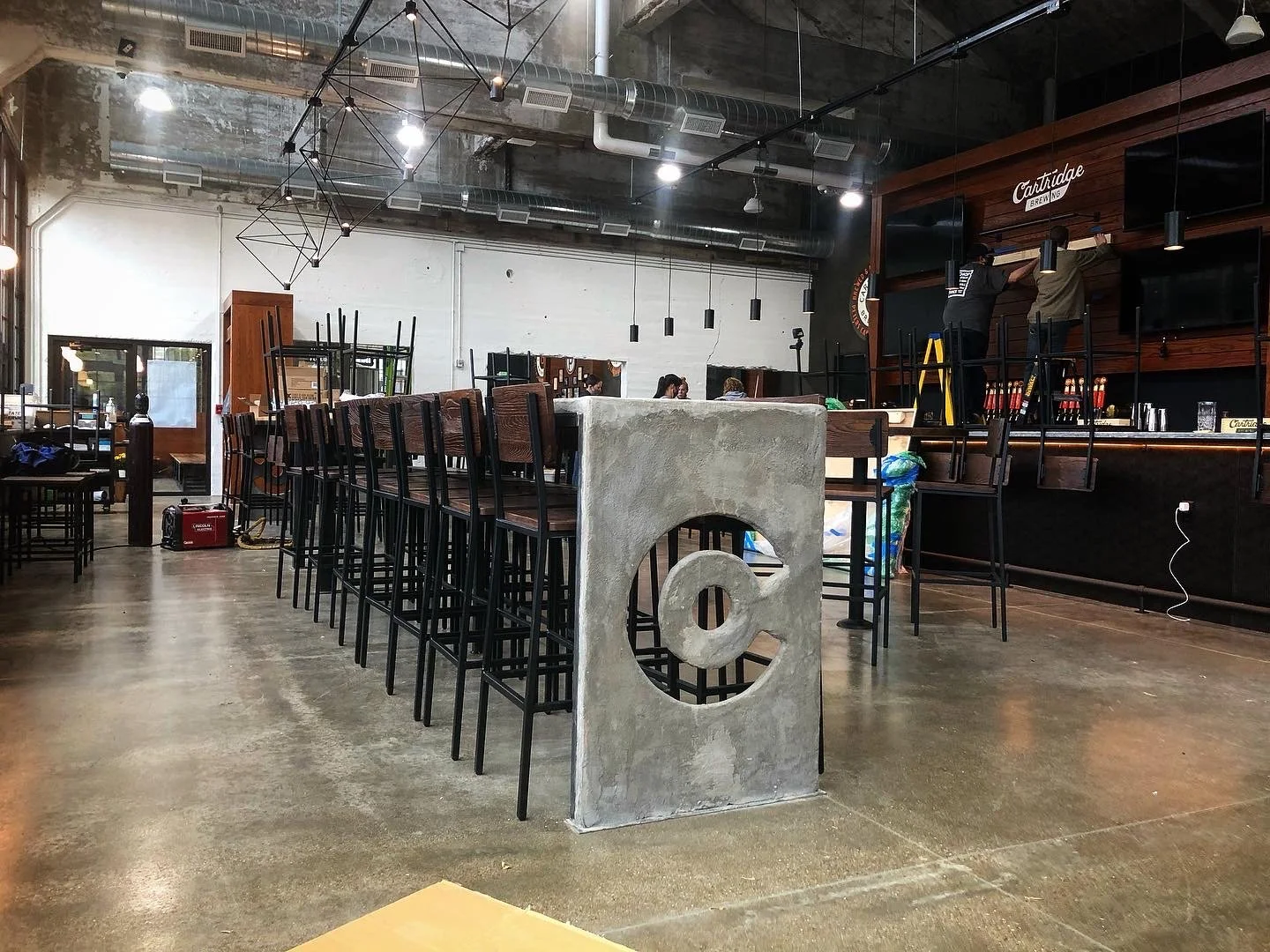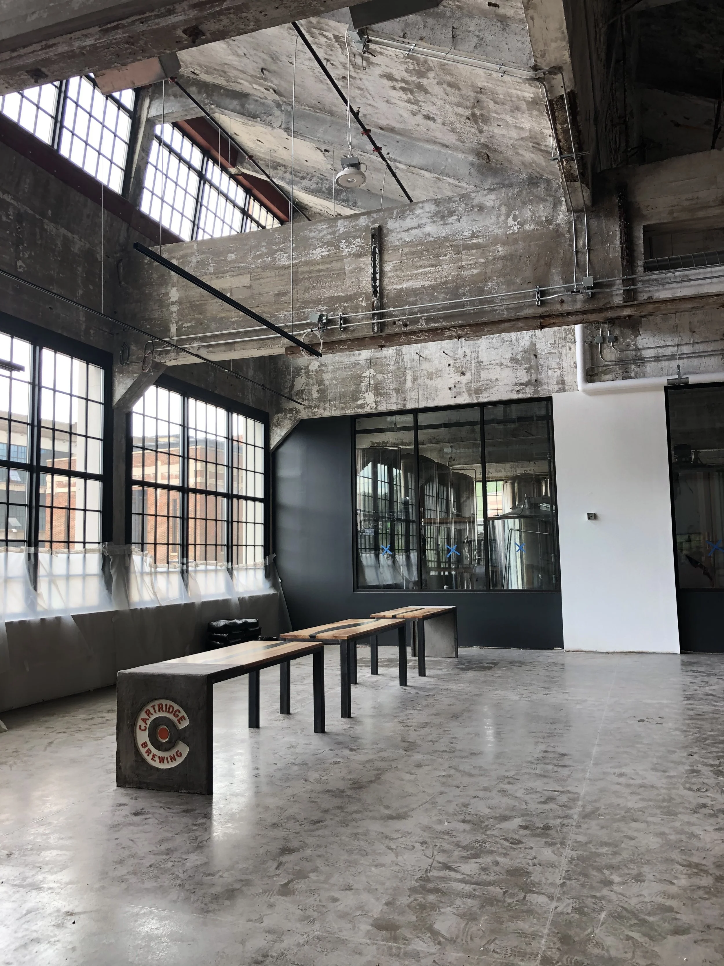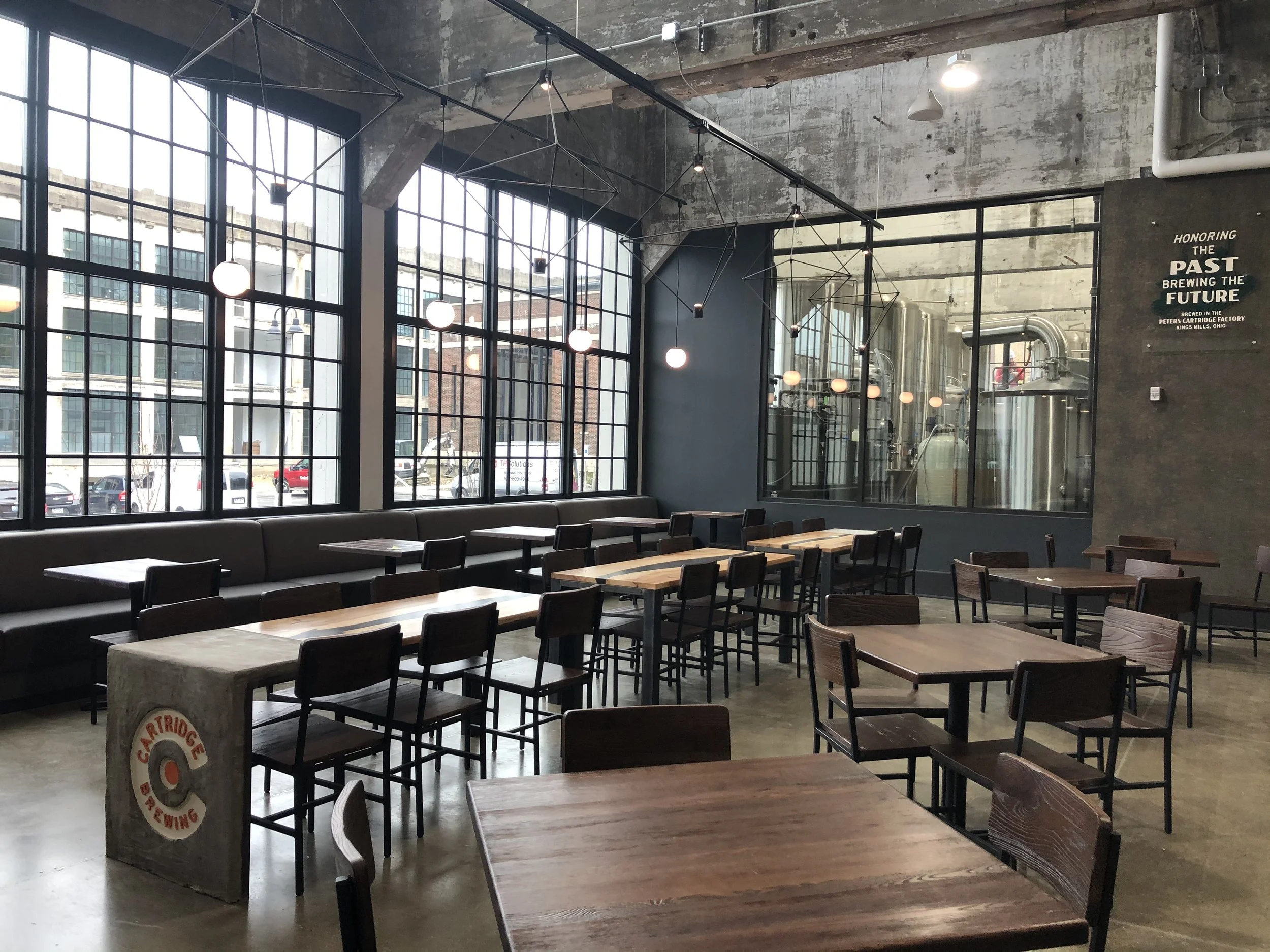 Located in the historic Peter’s Cartridge Company in Maineville, OH is an award wining brewery and restaurant - Cartridge Brewing. The founder reached out to me while they were renovating a portion of the building into the restaurant to help design some statement pieces for their main seating rooms.